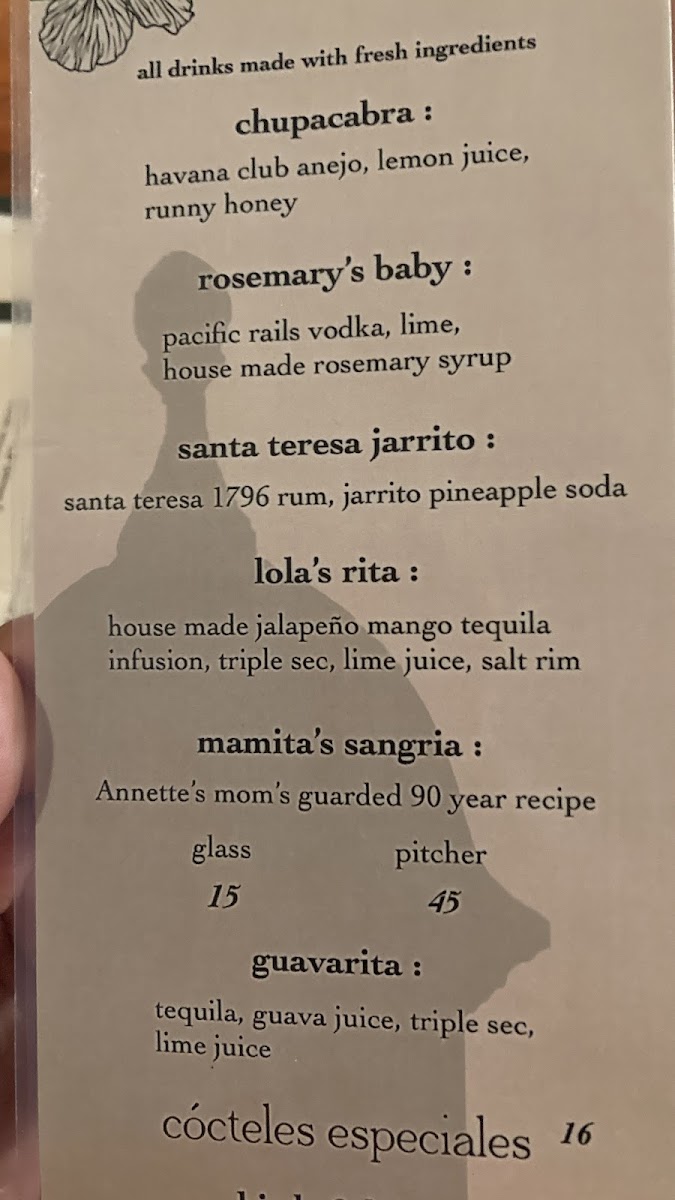Javier's Menu